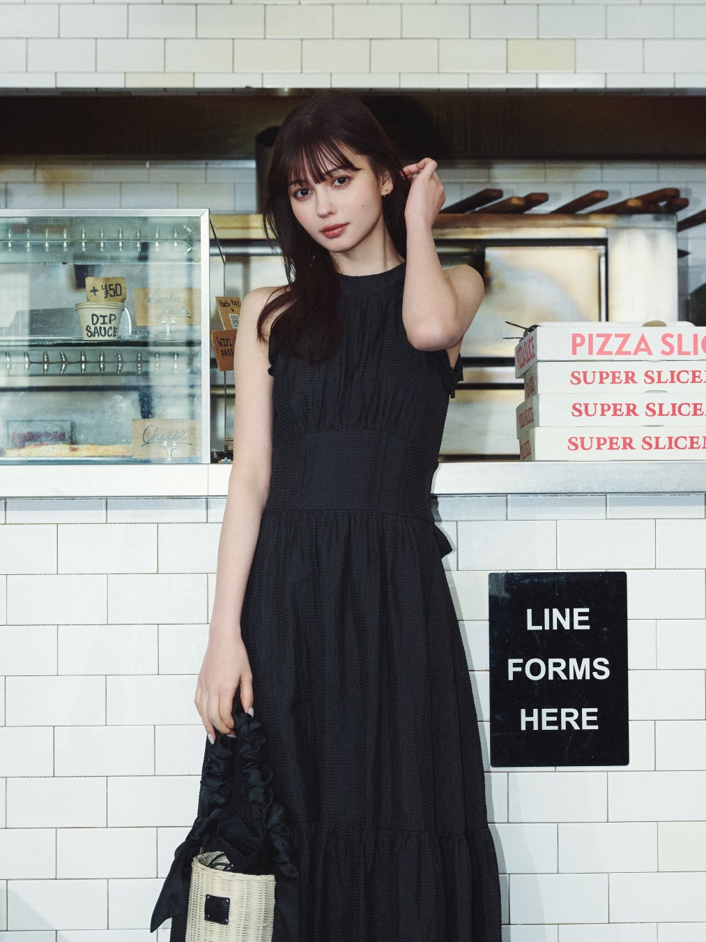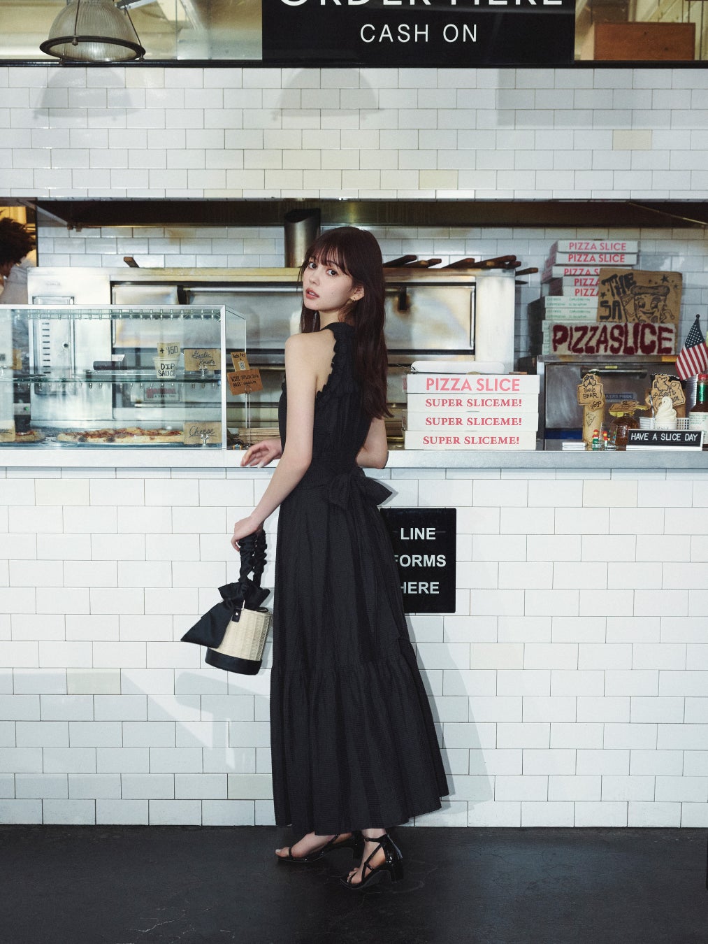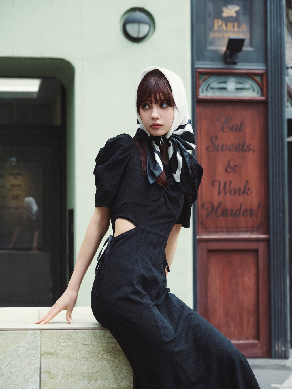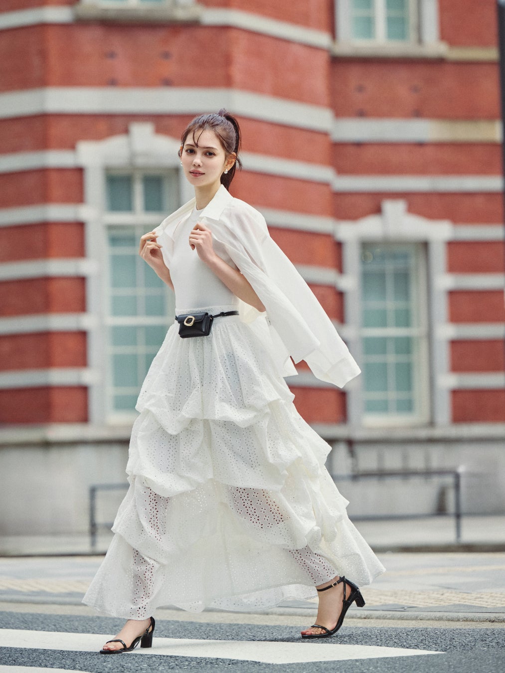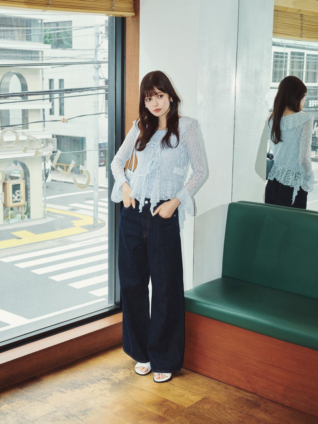 静かな通りや、人の行き交う街角を舞台に、村上愛花さんがまとうのは、dazzlinらしいやさしさに、少しの洗練を添えたスタイリングを提案します。