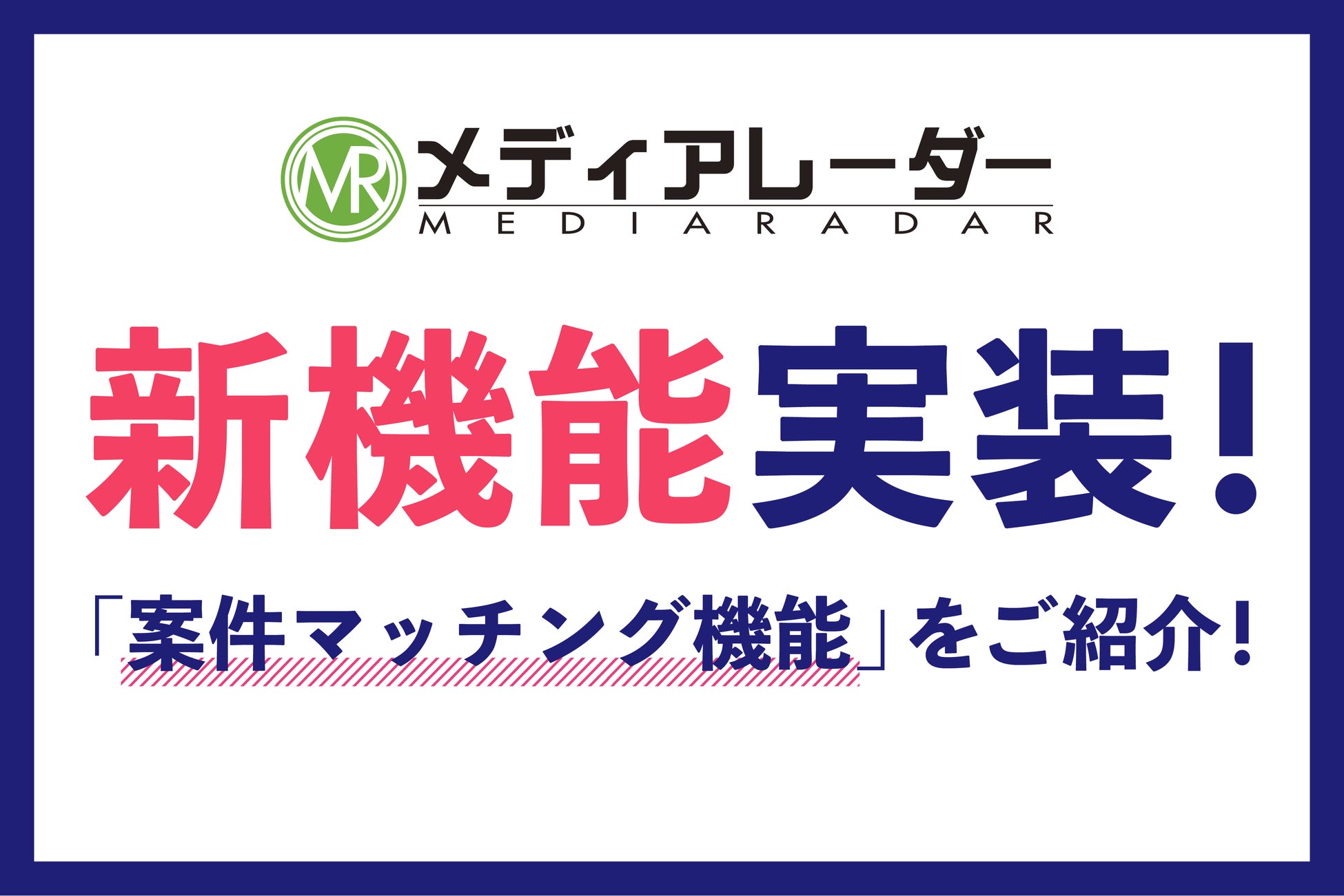 広告主・広告代理店の施策相談をより簡単に!No.1*の媒体資料ポータルサイト「メディアレーダー」が、「案件マッチング機能」を実装。