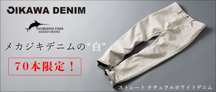 【新商品】宮城県気仙沼「オイカワデニム」から、サステナブルな素材で作るデニム、藤巻百貨店限定で新色ホワイトが70本限定発売決定!