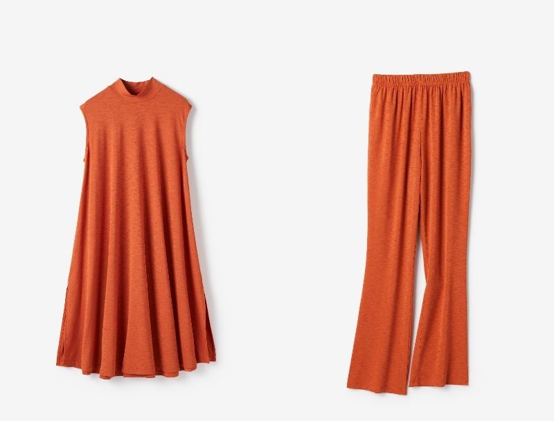 ほのかに節が浮かぶ艶やかなストレッチ素材で体型をカバーしながらUVカット効果、ひんやり接触冷感、水に濡れても速乾&シワにならないイージーケアなどの高機能を体感できるラインナップ。