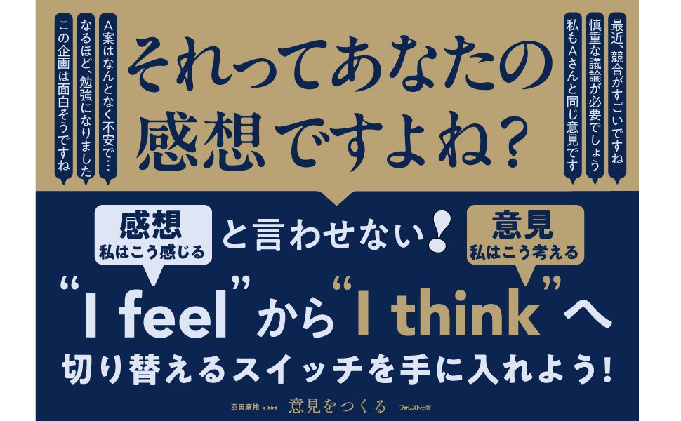 フォレスト出版株式会社(所在地:東京都新宿区、代表取締役:太田 宏)は、『意見をつくる』(羽田 康祐・著)を2026年3月20日(金)より順次発売します。本書は外資コンサルの「論理」と広告会社の「発想力」で数々の名著を生む著者が、AIには出せない「あなただけの意見」を力強く覚醒させる、最前線の実戦知を体系化した一冊です。