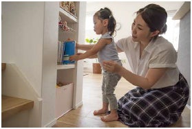 子どもから大人まで、家族みんなが片づけから解放され、豊かに暮らし、成長できる住まいの設計がテーマ。"収納 "と "育児・教育・育成 "を掛け合わせた言葉「収育®」をコンセプトに、収納の使いやすさを追求し、大人だけでなく子ども目線で使いやすい収納を提案。片づけが楽しくなる仕掛けをつくることで、片づけの習慣を身につけ、いつでもすっきり片づいた快