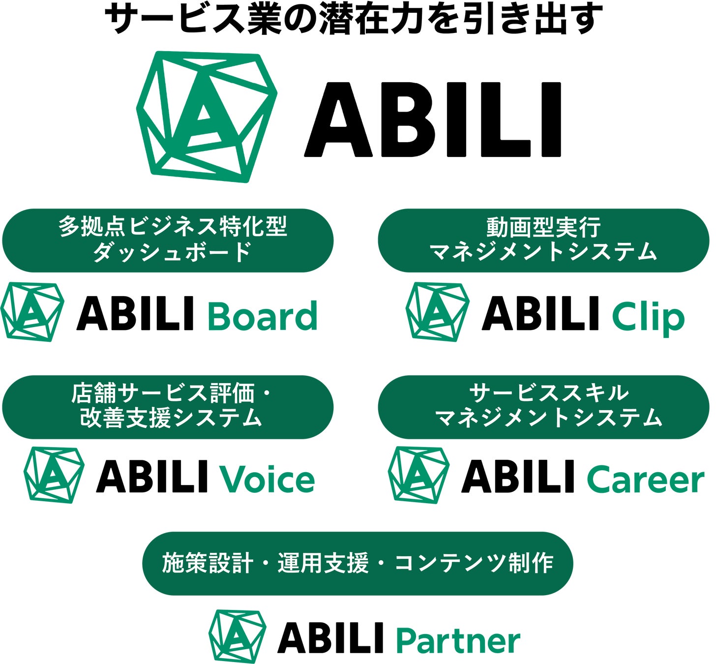 事業内容 :サービス業の潜在力を引き出す「ABILI(アビリ)」の開発・運営、及び経営コンサルティング