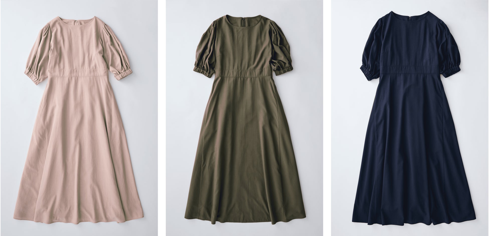・ウエスト位置、袖のボリューム感、スカートのフレア分量など全体のシルエットがとても美しく、女性らしさを実現