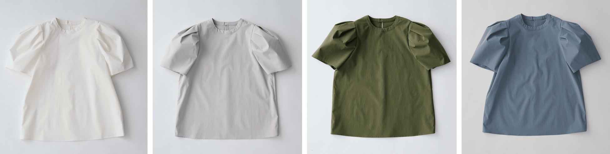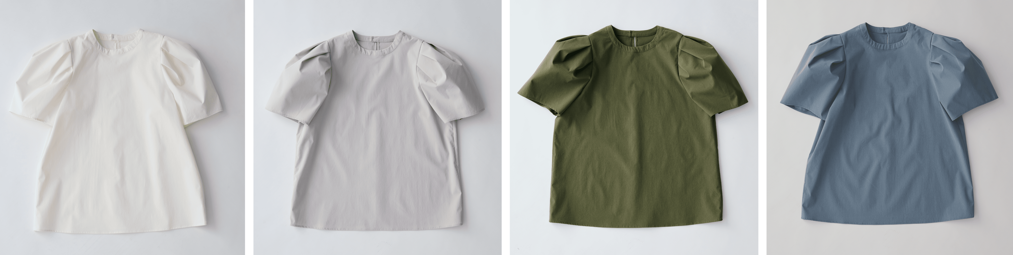 ・肩の深めのタックが程良いボリューム感を演出し、甘くなりすぎないデザインに