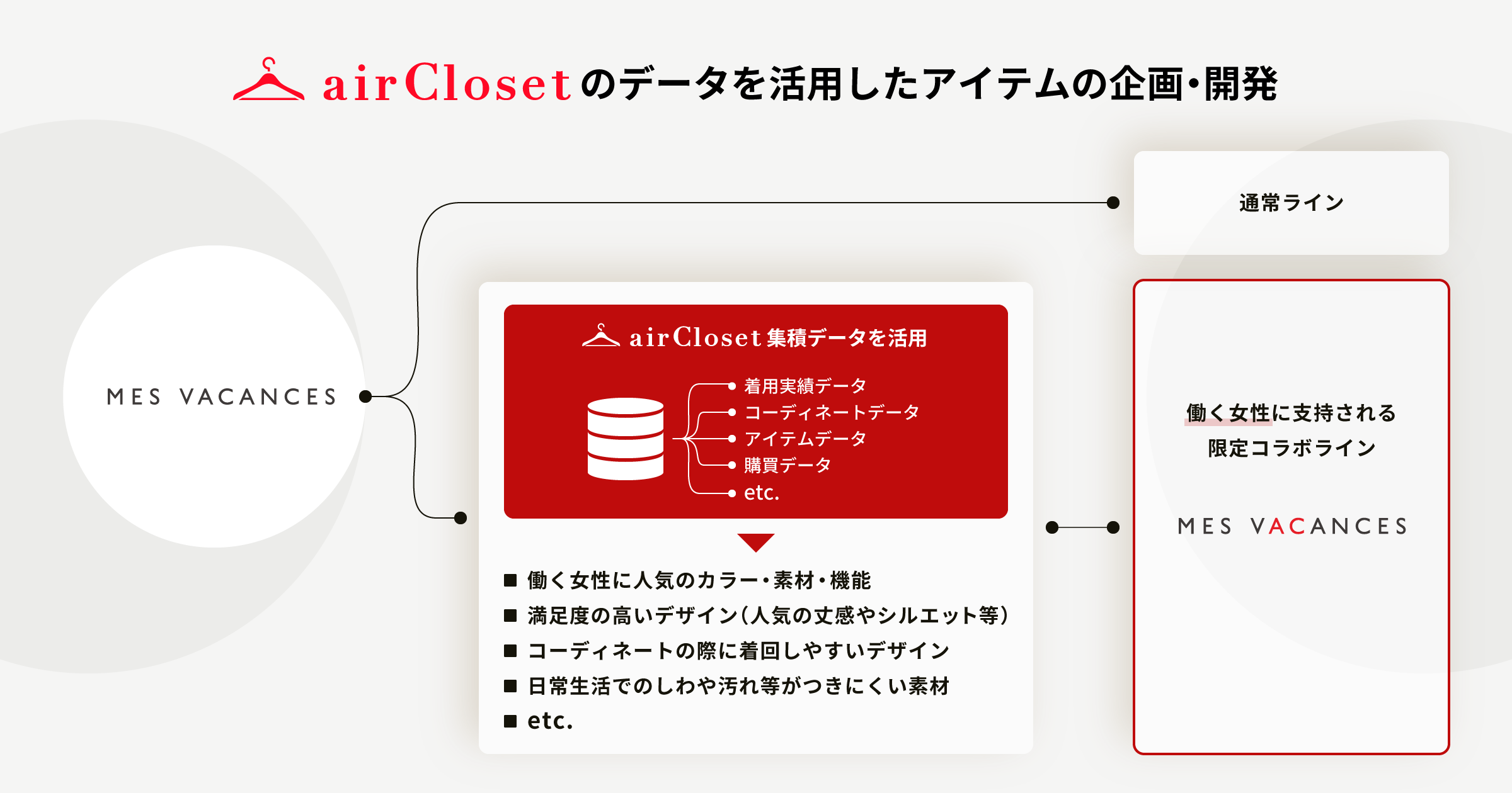 柴咲コウさんがプロデュースする『MES VACANCES』とのコラボ企画で、『airCloset』のデータを活用し、限定アイテムを共同で企画・開発