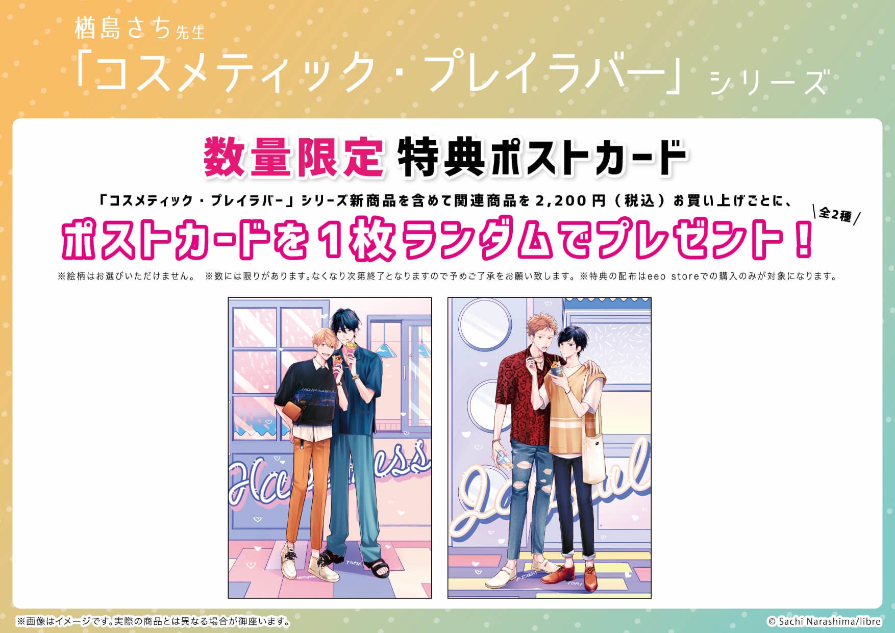 「コスメティック・プレイラバー」シリーズ新商品を含めて関連商品を2,200円(税込)お買い上げごとに、ポストカードを1枚ランダムでプレゼントしています。