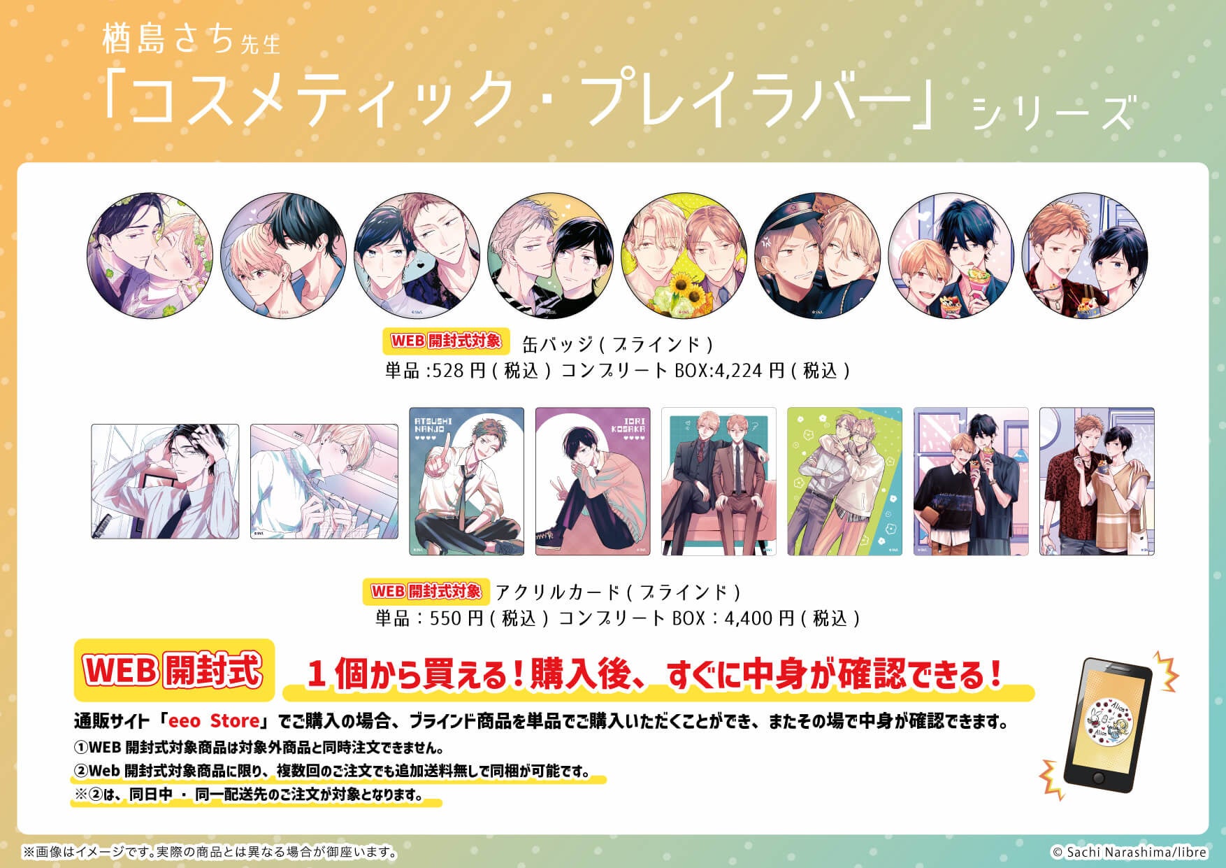 楢島さち先生の超人気作『コスメティック・プレイラバー(略称:コスラバ)』に登場する攻・佐橋斗真のお誕生日に合わせ、楢島さち先生作品の新作グッズがeeo Store通販に登場!
