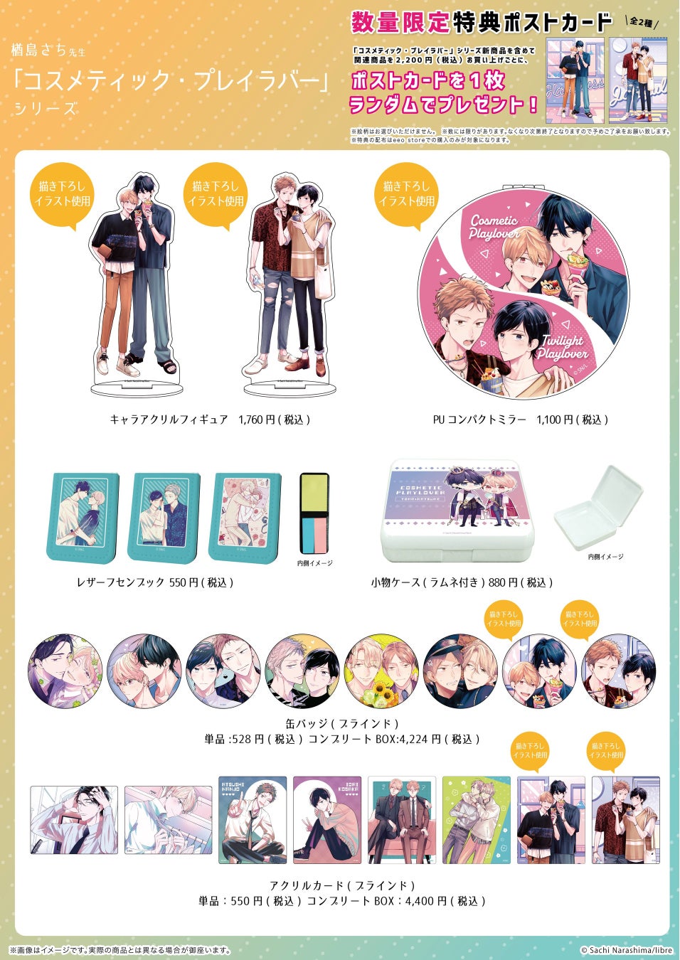 そして今回、佐橋のお誕生日8月7日より『コスメティック・プレイラバー』、スピンオフ『トワイライト・プレイラバー』『ビターネス・プレイラバー』の新作グッズが発売されました。