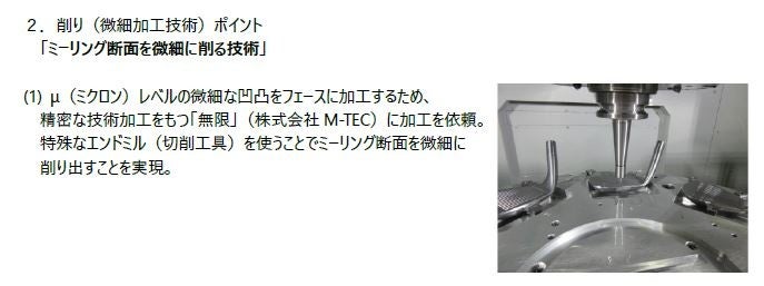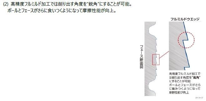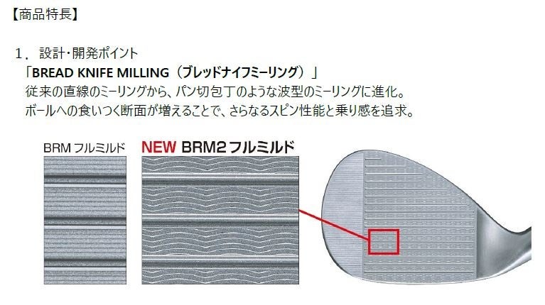 同商品は、μ(ミクロン)レベルの精密な加工技術をもつ「無限」(株式会社M-TEC)※2と共同開発を行い、 新ミーリングデザイン「ブレッドナイフミーリング」により、球の食いつき、乗り感が進化し、スピン性能を向上させたモデルです。