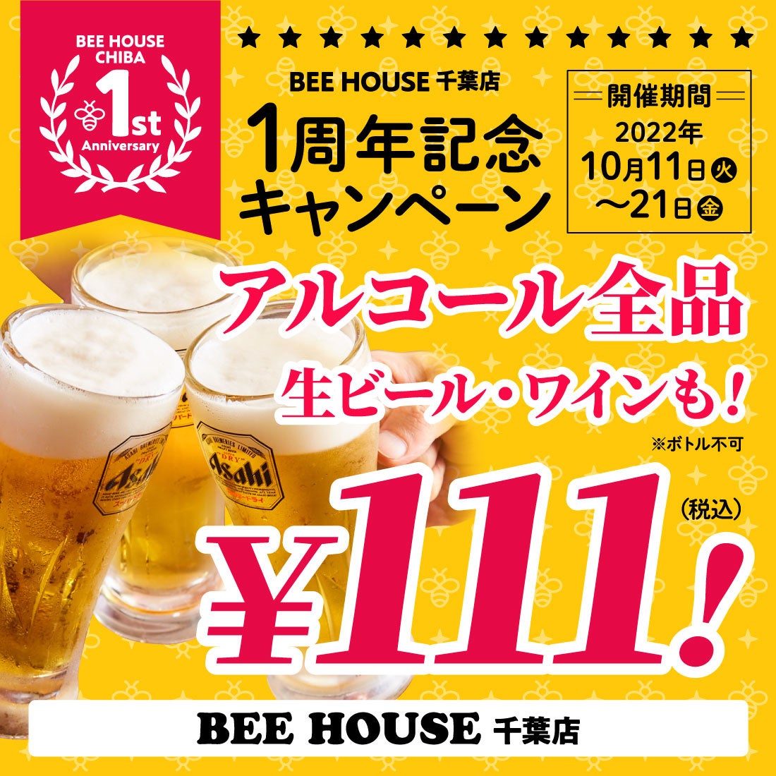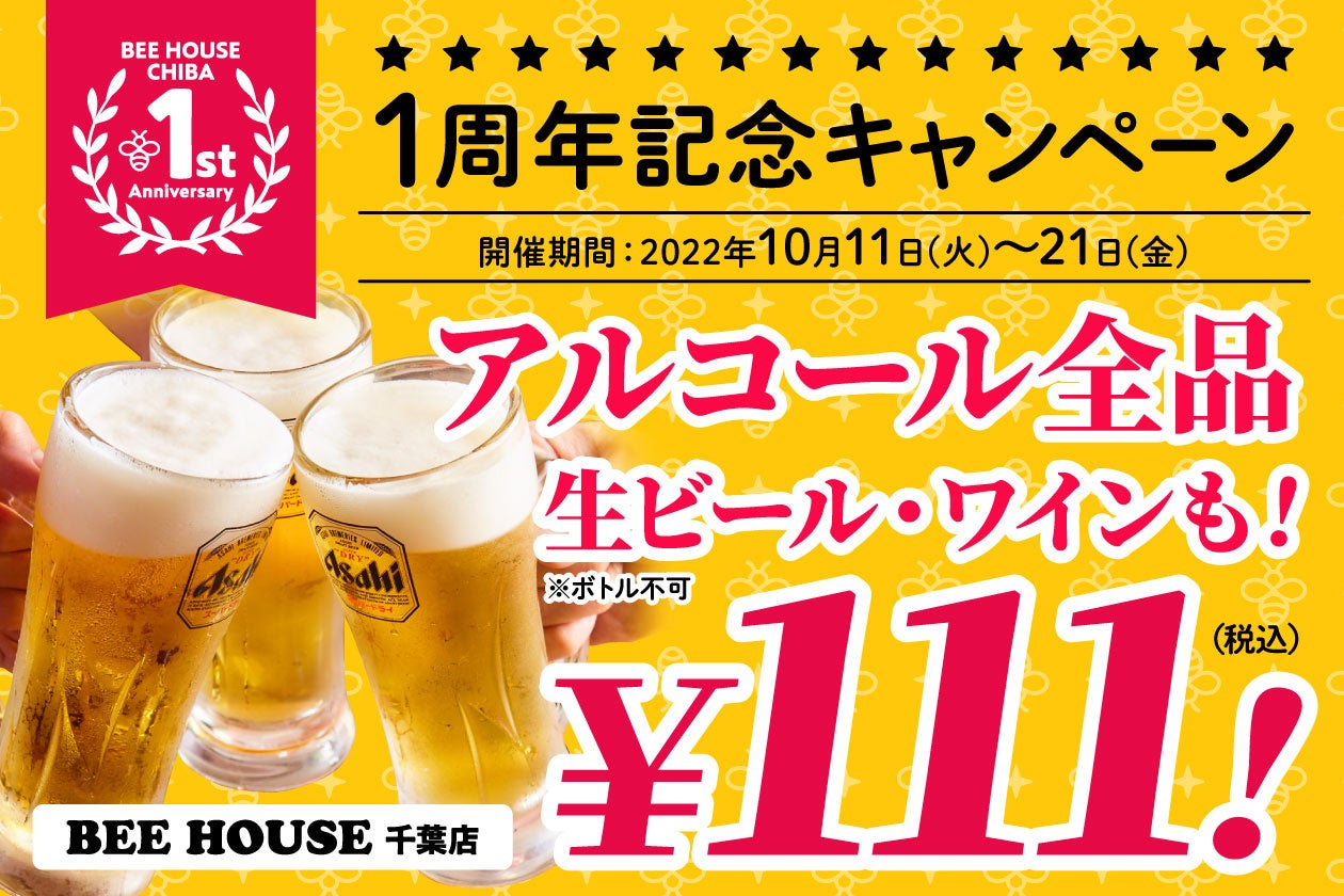 【1周年記念!11日間限定でアルコールが何杯飲んでも1杯111円】はちみつ専門店「BEE HOUSE 千葉店」が1周年を記念して10月11日(火)よりキャンペーンを実施!