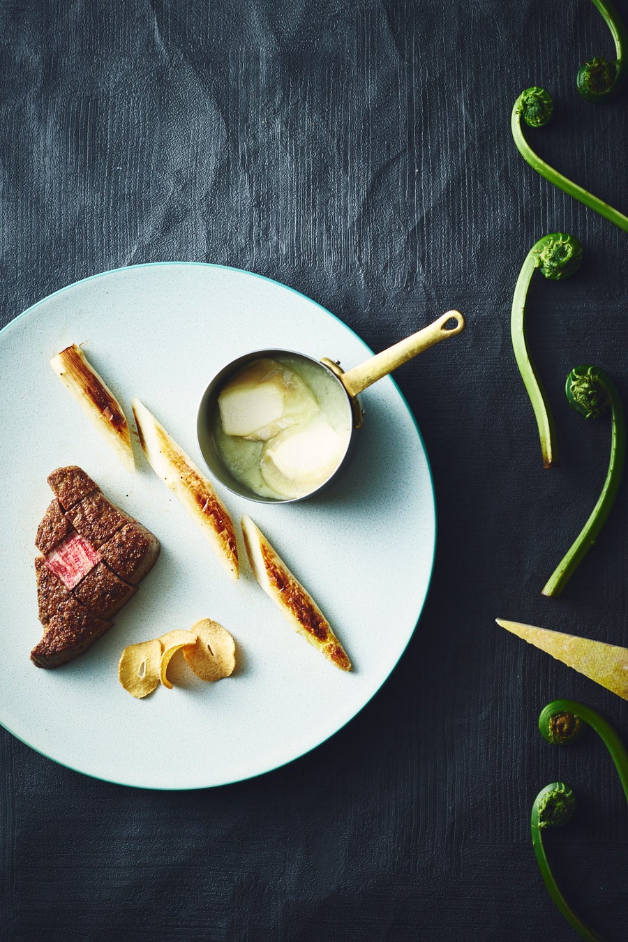 極太な国産ホワイトアスパラガスはローストをしてジューシーさのなかに旨味を閉じ込めました。