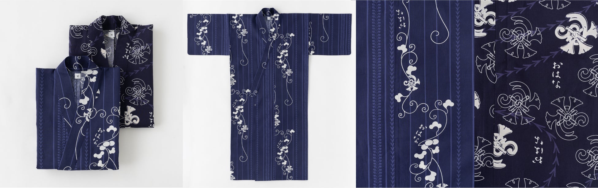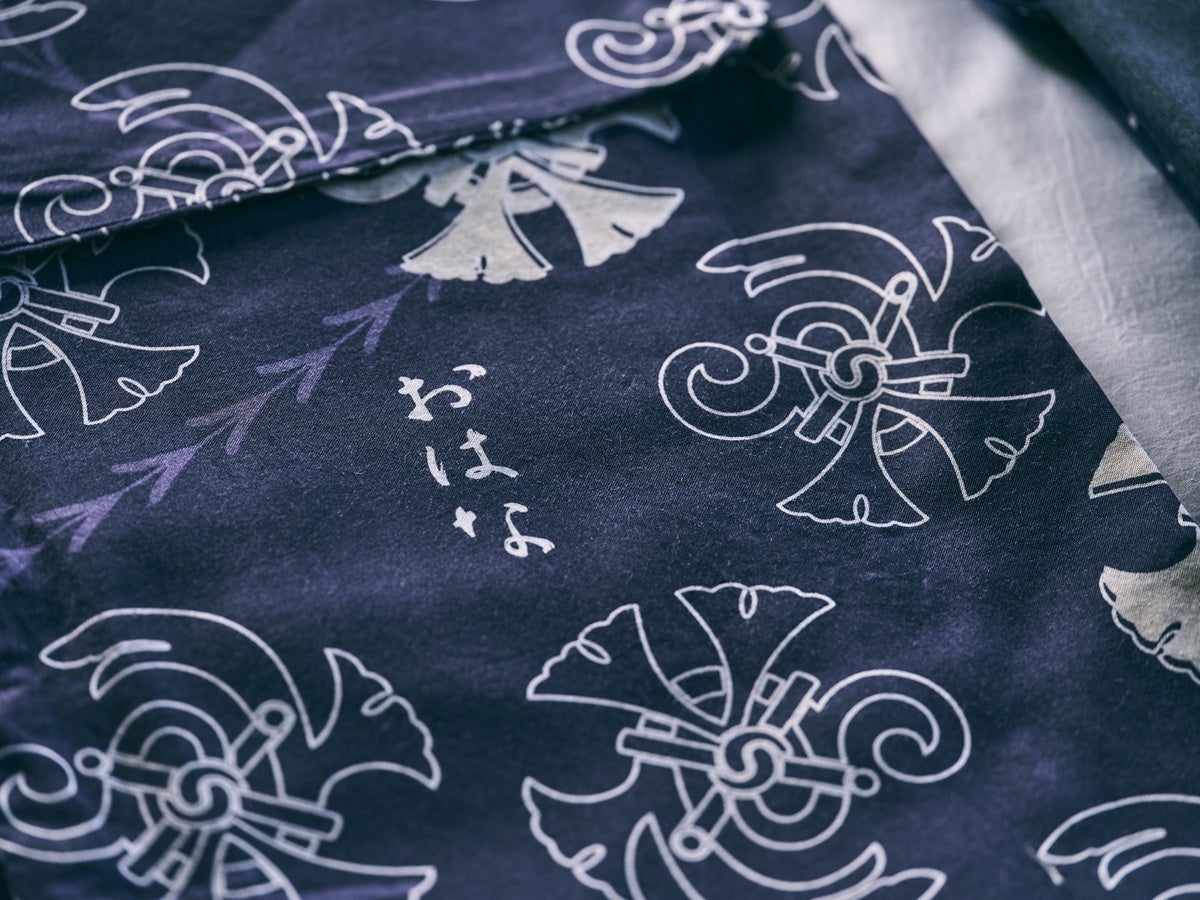 今回も弊社のものづくりのネットワークを通じて、日本で織られた白生地を、日本のさんちで染め、日本国内で縫製したものになっております。