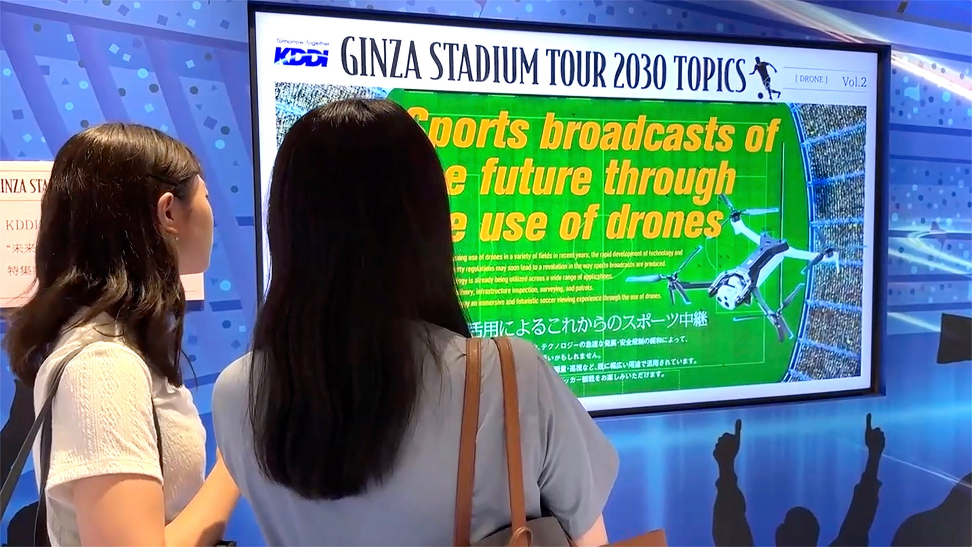 株式会社ワントゥーテン(本社:京都府京都市、代表:澤邊芳明)は、KDDI株式会社(本社:東京都千代田区、代表取締役社長 CEO:髙橋誠)のブランド体験施設「GINZA 456 Created by KDDI」(以下 GINZA 456)にて開催中の、未来のサッカー観戦が体験できるイベント「GINZA STADIUM TOUR 2030」(以下、本イベント)において、ARやXRなどのデジタル技術を駆使した体験型コンテンツ設計や空間展示の制作およびプロデュースを行いました。