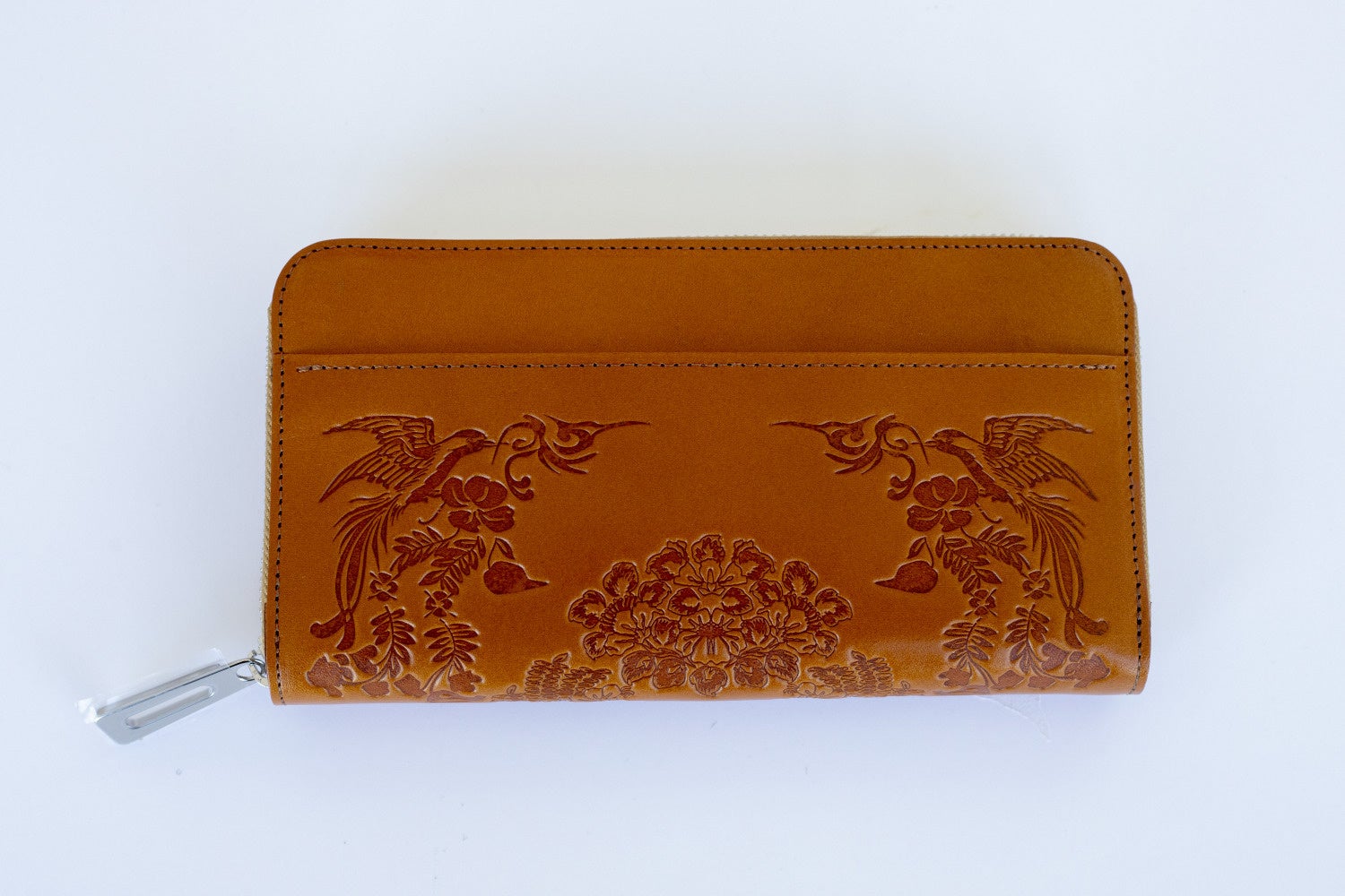 シルクロードの終着地ともいわれる正倉院。「平和」と「豊かさ」への願いが込められた正倉院文様が、巧みの技で美しく刻まれた本革の長財布です。