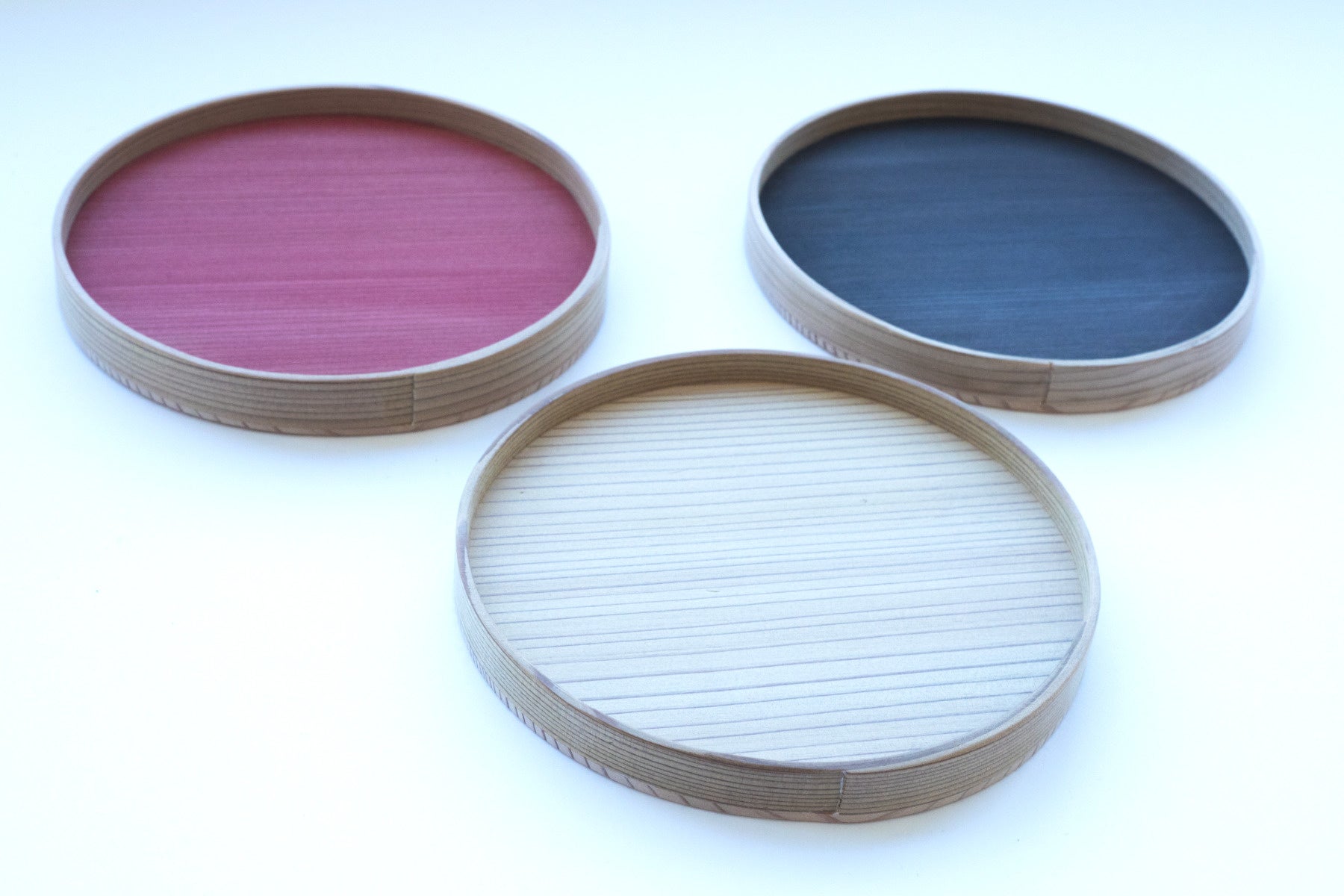 吉野杉で作る曲げわっぱ。木を曲げるわっぱの高い技術が光る、色どり豊かなプレートが、お茶の時間を華やかに演出してくれます。