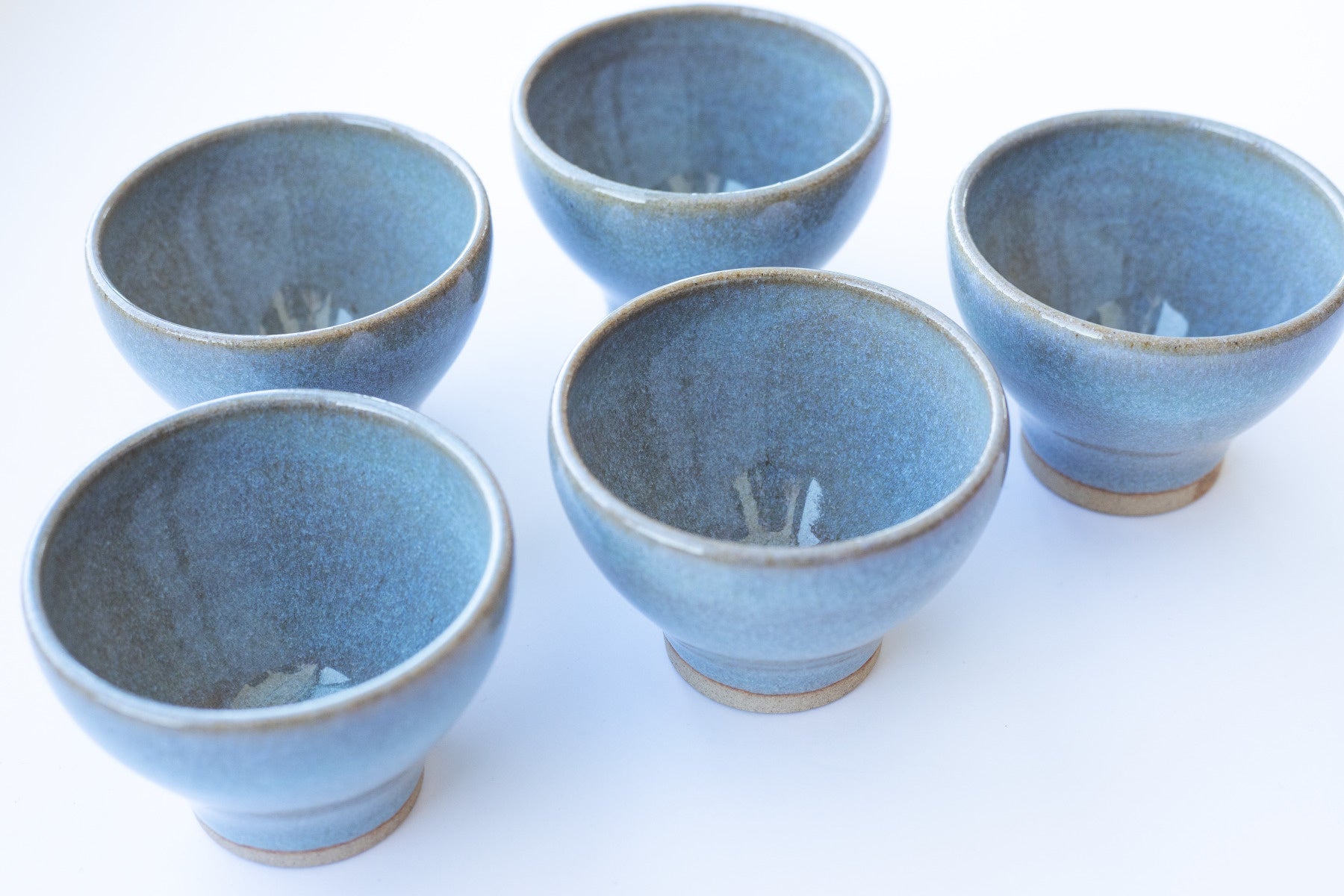 爽やかな青の釉薬と、赤膚焼特有の「暖かみのある土色」が特徴で、ぐいのみや小皿としても使えます。奈良の吉野、豊かな自然の中で、一つひとつ丁寧に作られています。
