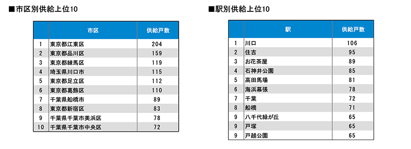 着工件数等を集計しました。また、前年同月における比較や市区別、駅別の供給ランキング等も算出しました。