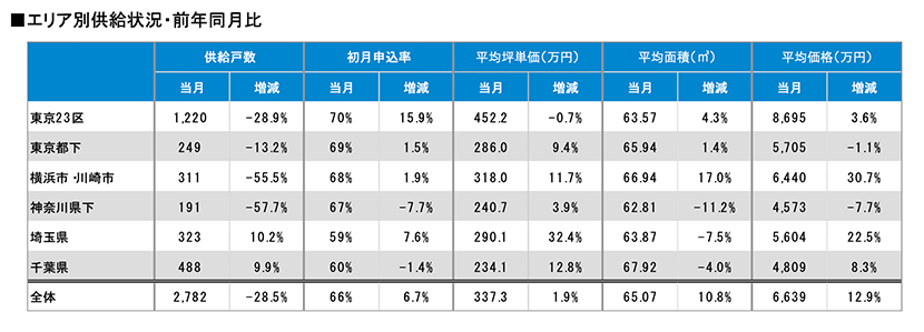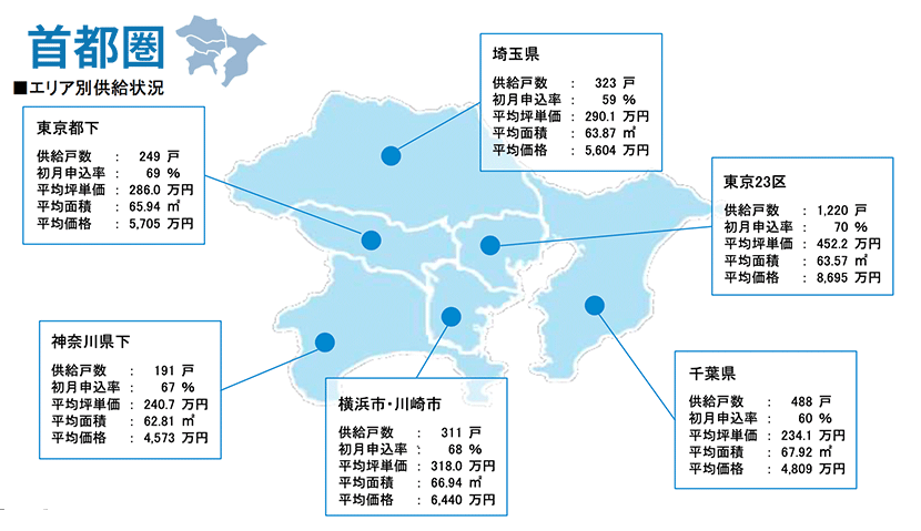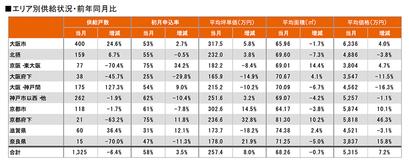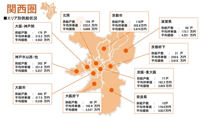 集計対象エリアは首都圏及び関西圏となっており、それぞれのエリア別相場情報、需給動向、