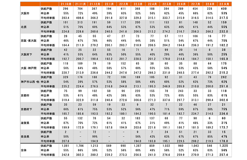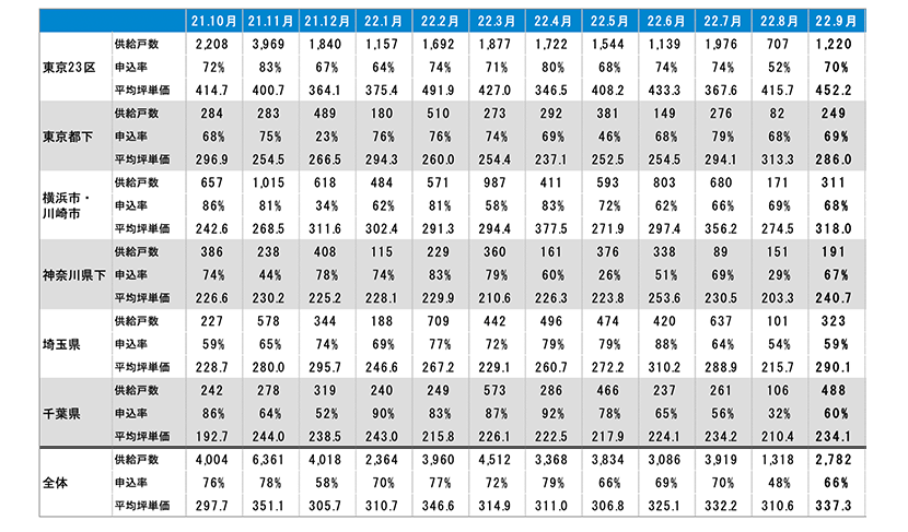 不動産ビッグデータとAI等のテクノロジーを活用し、不動産情報プラットフォームを提供する株式会社マーキュリーリアルテックイノベーター(本社:東京都新宿区 代表取締役:陣 隆浩)は、独自調査による新築分譲マンションの動向を発表致します。今月は、2022年9月度分譲実績データです。