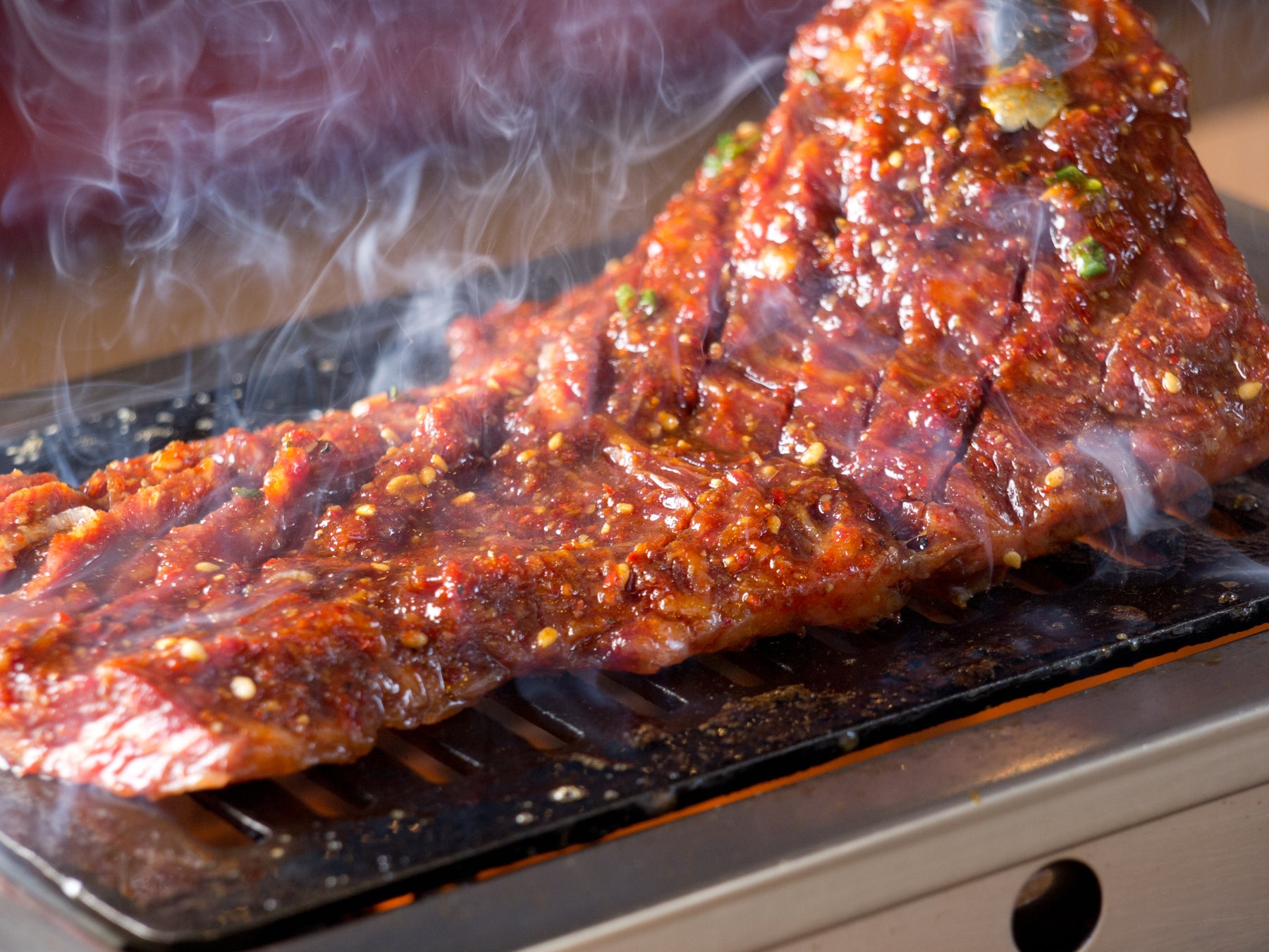 たっぷり大きなメガハラミ。特製の甘辛だれがやみつきになります。
