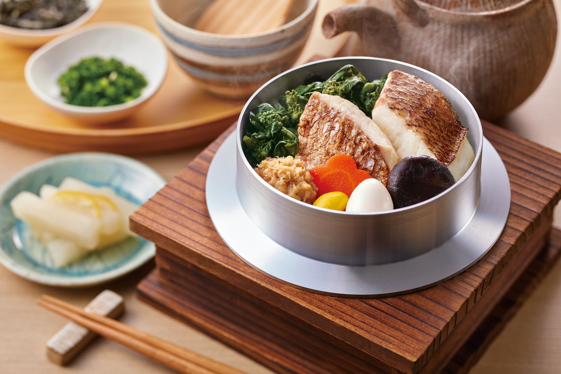 鯛の中骨・頭・アラをふんだんに使った塩ベースの鯛出汁を使用したおだしで、じっくりと炊き上げました。