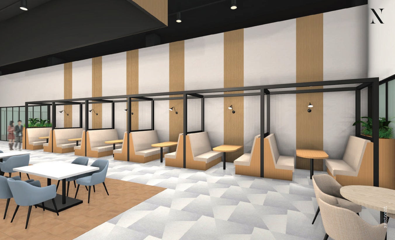 お客様にゆったりとお過ごしいただけるよう、空港のラウンジのような落ち着いた雰囲気を持たせ、高級感のあるデザインに仕上げています。カフェは様々な種類のお飲み物をご用意しており、商談スペースやラウンジスペースへ自由にお持ち込みいただけます。