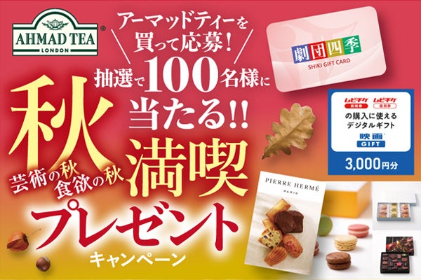 劇団四季ギフトカードや有名スイーツが当たる! 英国紅茶ブランド アーマッドティー「秋を満喫 プレゼントキャンペーン」