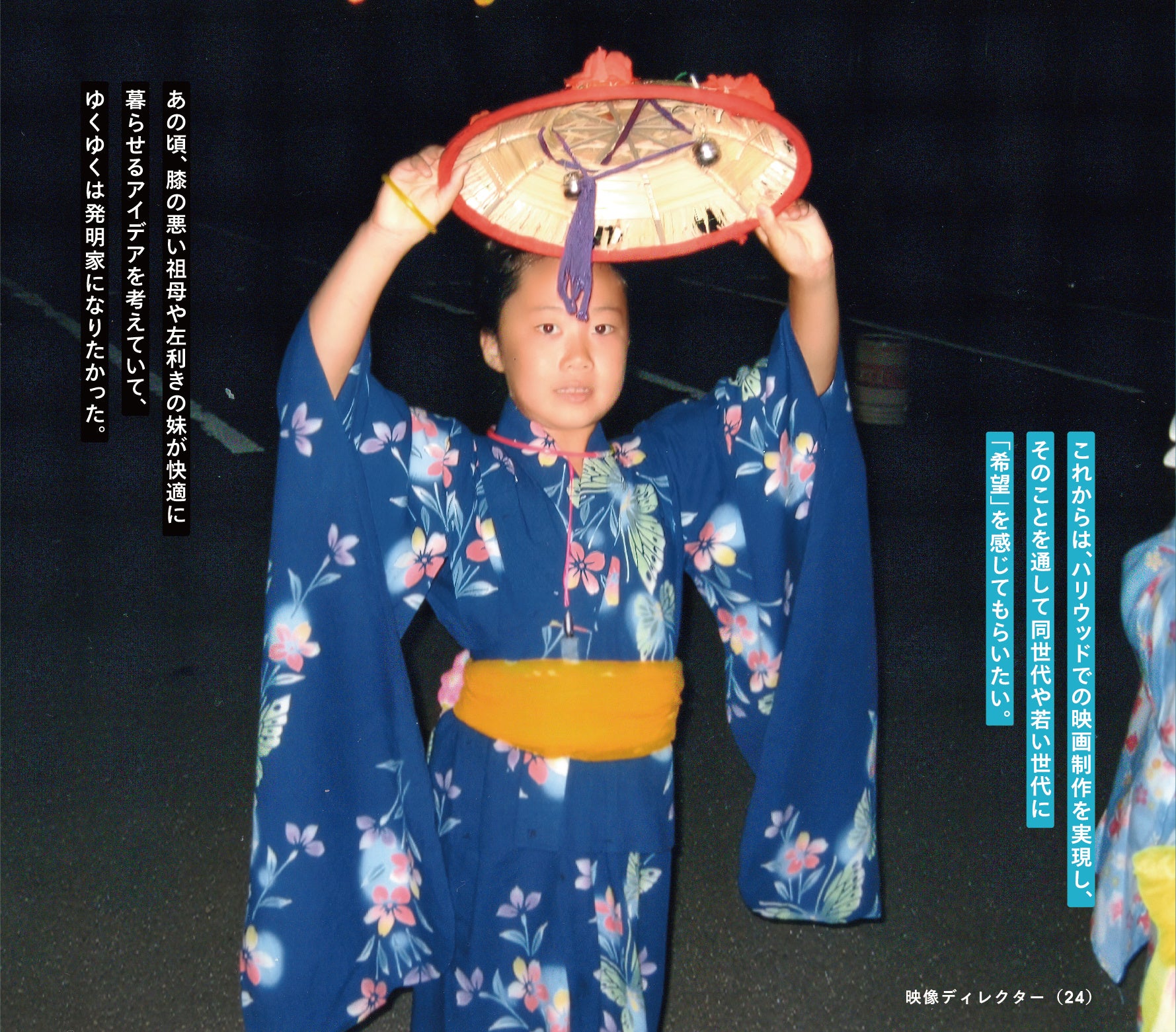 私には夢があります、夢は自分を強くします。でもこれは言葉で相手に伝えるより、映像作品越しに映画でより多くの人に伝達したいのです。私が幼少期にテレビでみた「同世代の発明家の子」から受けた影響で誰に「発明家になれ」と言われたでもなく、自然と発明家になりたい思いが芽生えたこと・・・そんな風に、私が制作した映画で自然とどこかから「希望」という新芽が生えたら嬉しいです。