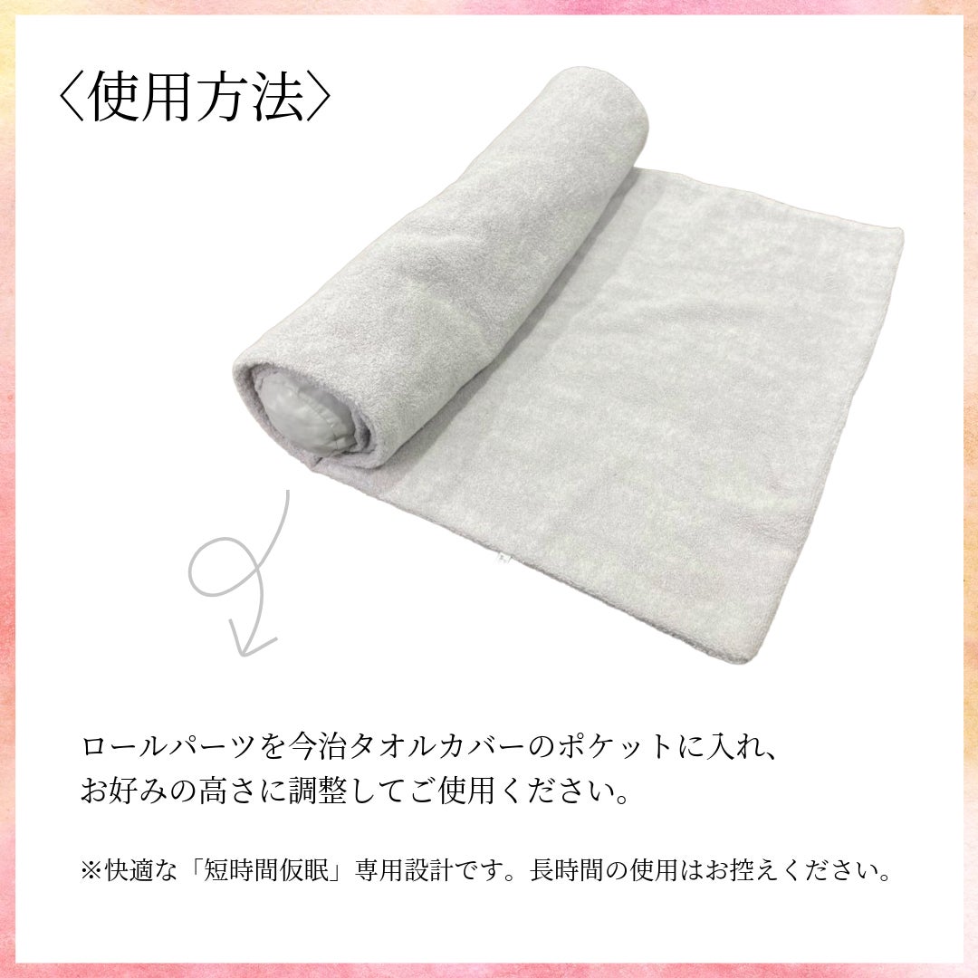 ロールパーツを今治タオルカバーのポケットに入れ、お好みの高さに調整してご使用ください。