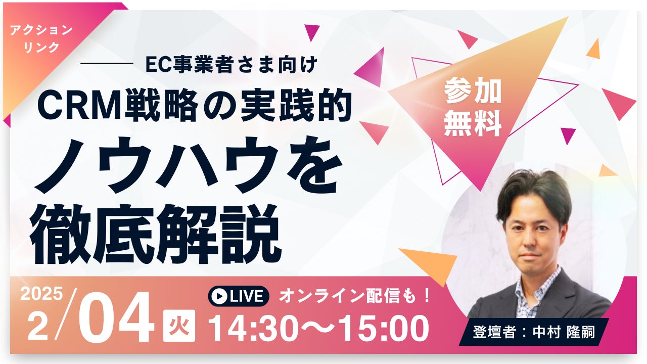 株式会社ファブリカホールディングス(本社:東京都港区、代表取締役社長CEO:谷口政人)の完全子会社、株式会社ファブリカコミュニケーションズ(本社:愛知県名古屋市中区、代表取締役社長CEO:谷口政人、以下「当社」)が運営するEC特化型CRM・MAツール「アクションリンク」は、2025年2月4日に開催される「ECzine Day 2025 Winter」に登壇することをお知らせいたします。本セミナーでは、「たった1ヶ月でリピート売上2倍に!LTVが激増する“CRM成功の鉄板シナリオ”とは?」と題し、CRM戦略の実践的なノウハウを解説いたします。