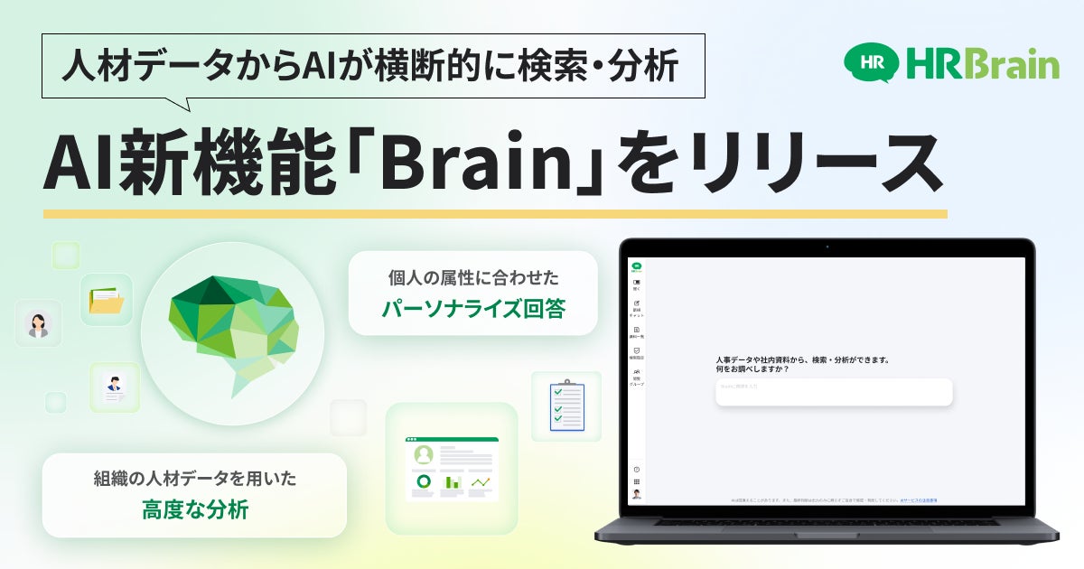 株式会社HRBrain(本社:東京都港区/代表取締役CEO:堀 浩輝、以下「当社」)は、蓄積された人材データと社内資料をAIが横断的に分析・検索し、チャット形式で意思決定を支援する新機能「HRBrain Brain(以下、「本機能」)」の提供を開始しました。