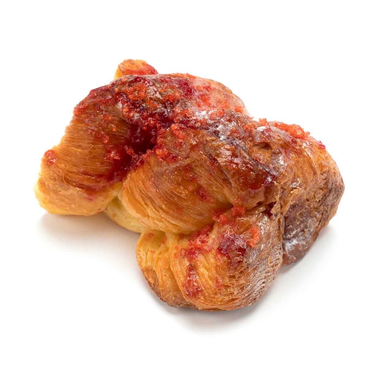 ふんわりとした口どけの良いデニッシュ生地に、甘酸っぱいラズベリージャムをたっぷりサンド。さらに、香り豊かなドライいちごと粉砂糖をトッピングし、華やかな味わいに仕上げました。サクッと軽やかな食感と、ラズベリーのフルーティーな酸味が絶妙なバランス。朝食やティータイムにぴったりの一品です。