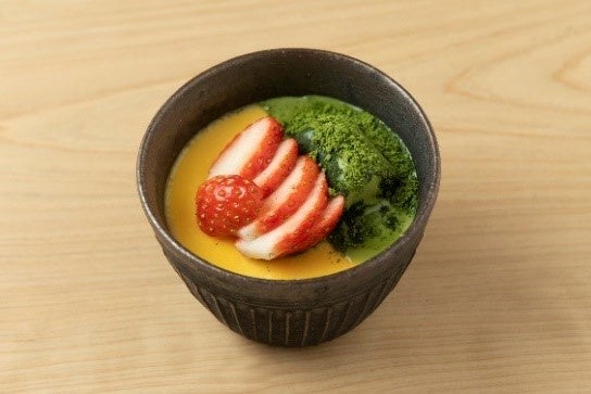 丁寧で工夫を凝らした割烹料理を提供する「三分亭」。抹茶の生チョコアイスと滑らかなプリンの相性が抜群な和食屋さんの特製プリンです。