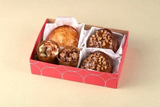 ハッピーバレンタインBOX(チョコクリームの焼きたてアップルパイ×2・焼きたてカスタードアップルパイ・くるみとりんごのチョコパイマフィン・アップルパイマフィン)