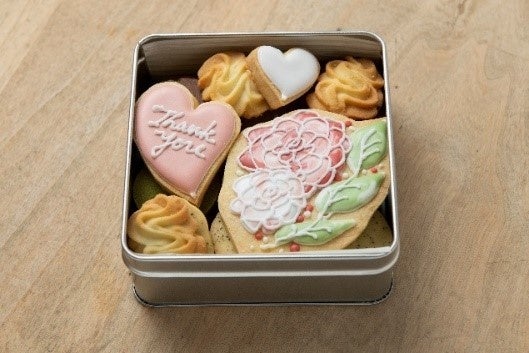 チョコナッツ、紅茶、抹茶など6種類ほどのクッキーアソートにお花のアイシングクッキーを添えました。大切な人やお世話になっている方への贈り物にぜひ。