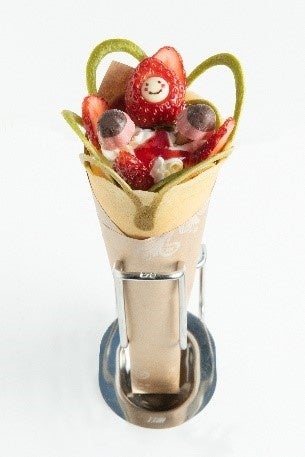 ホイップクリームとクリームチーズはbenオリジナル。いちごを頭巾にデコレートした期間限定のクレープです。