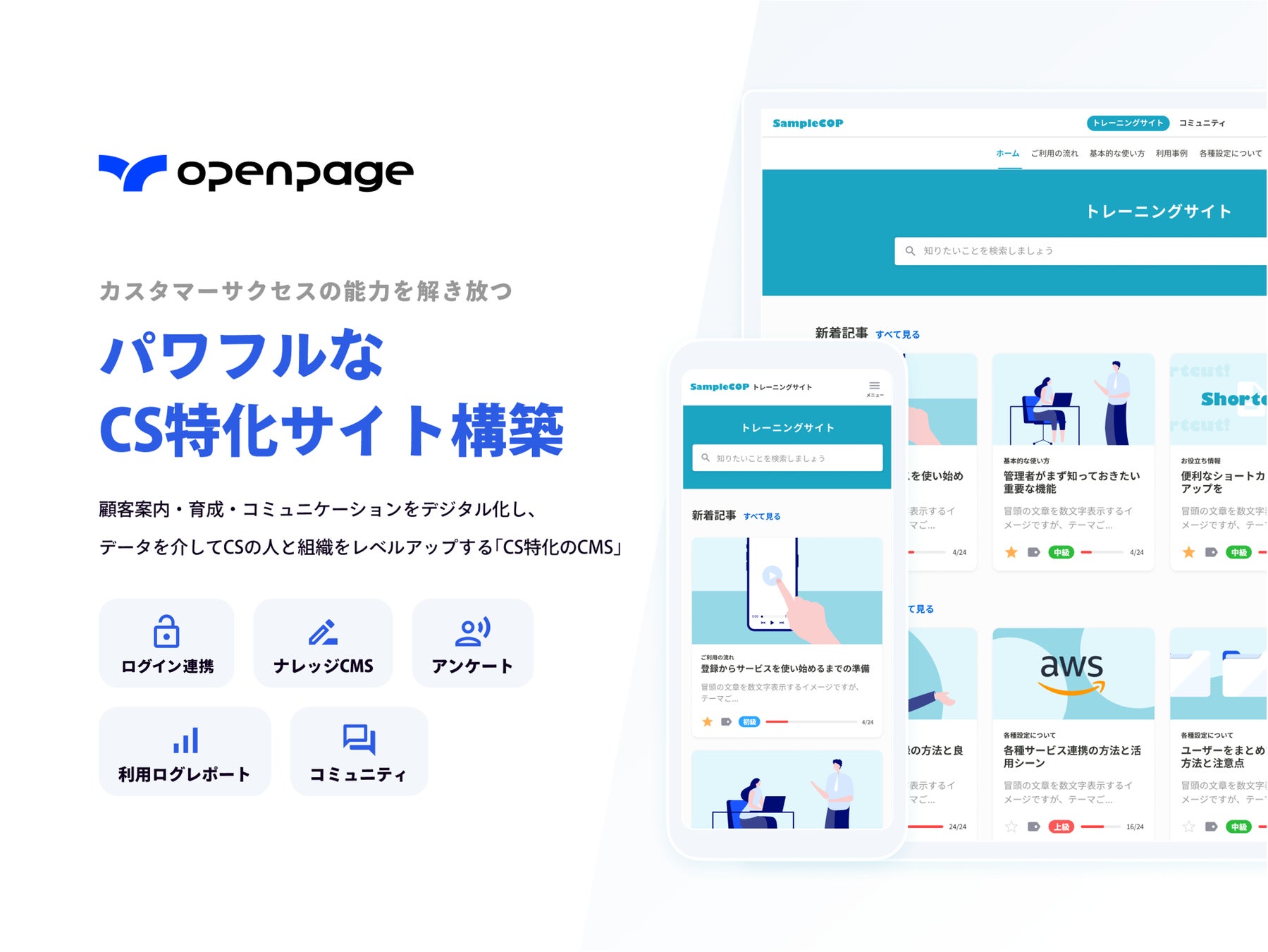 CSをデジタル化する「openpage」の製品提供をはじめ、CSの体制づくりのコンサルテーション、SNSでの情報発信、大型オンラインイベントの企画など、米国流のCSを国内で広く啓蒙。