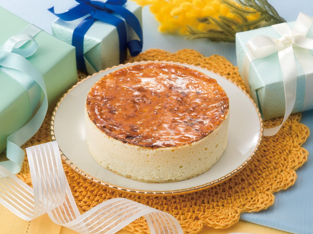 オーストラリア産クリームチーズのスフレ生地の中にジャージー牛乳を使用したなめらかなカスタードクリームを入れて焼き上げたカスタードプリン風のチーズケーキです。