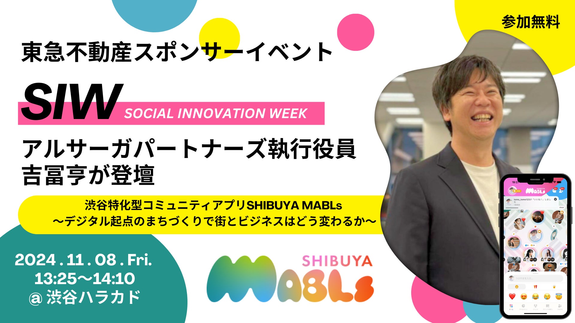 企業のDXを促進するアルサーガパートナーズ株式会社(本社:東京都渋谷区、代表取締役社長 CEO/CTO:小俣泰明、以下「アルサーガパートナーズ」)は、一般社団法人渋谷未来デザインが主催する、渋谷・カルチャー・アート・テクノロジーなど、さまざまなテーマの最先端の取り組みや研究などを通じて、 新たなアイデアに出会えるイベント「SOCIAL INNOVATION WEEK(以下、SIW)」に弊社執行役員兼システム開発事業本部長の吉冨が登壇することをお知らせします。