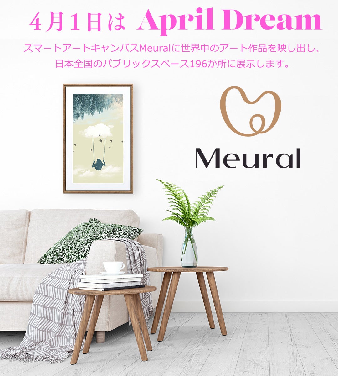 スマートアートキャンバスMeuralに世界中のアート作品を映し出し、日本全国のパブリックスペース196か所に展示したい。その場所には人があふれ、幸せな気持ちで満ちている。