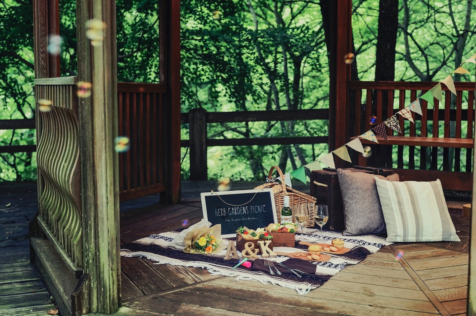 神戸布引ハーブ園のピクニックは、ガーデンが舞台。開放感あふれる園内には、花、ハーブ、芝生、ベンチ、テーブル、東屋などピクニックシーンを彩るロケーションが点在しています。バスケットを片手に、お気に入りの場所を探しながら、最高のおしゃピクを満喫しませんか