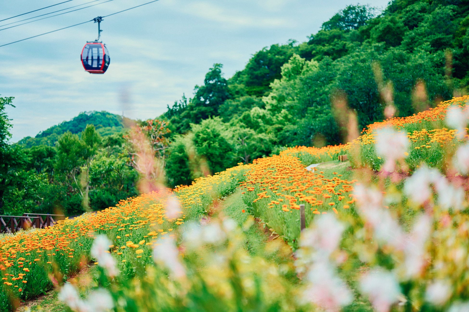 新幹線・神⼾市営地下鉄「新神⼾駅」より徒歩約5分。神⼾市街地や北野異⼈館からすぐのアクセスの良いリゾート施設です。ロープウェイで神⼾・京阪神の街並みを眼下に眺めながら、約10分間の空中散歩をお楽しみいただくと、四季折々約200種75,000株のハーブや花々がお迎えします。レストランやカフェ、テラスで⾷事やスイーツを。ピクニックを楽しんだりハンモックでのんびりくつろいだりと、1⽇を優雅にお過ごしいただけます