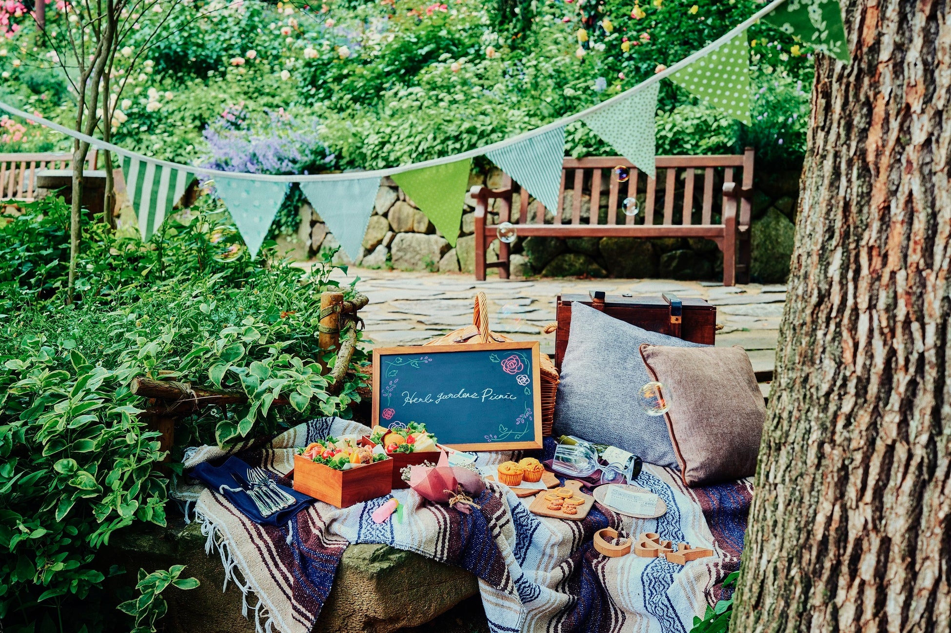 春、秋の大人気企画「ガーデンピクニック」。「上質な過ごし方」をテーマに、ピクニックに欠かせないフードやスイーツ、ドリンク、レジャーシート、カッティングボード、カトラリーセットなどをまとめてレンタル。ピクニックを演出するドライフラワーやガーランド、アルファベットオブジェ、黒板、シャボン玉などもセットのため、手ぶらでワンランク上の「おしゃピク」をお楽しみいただけます