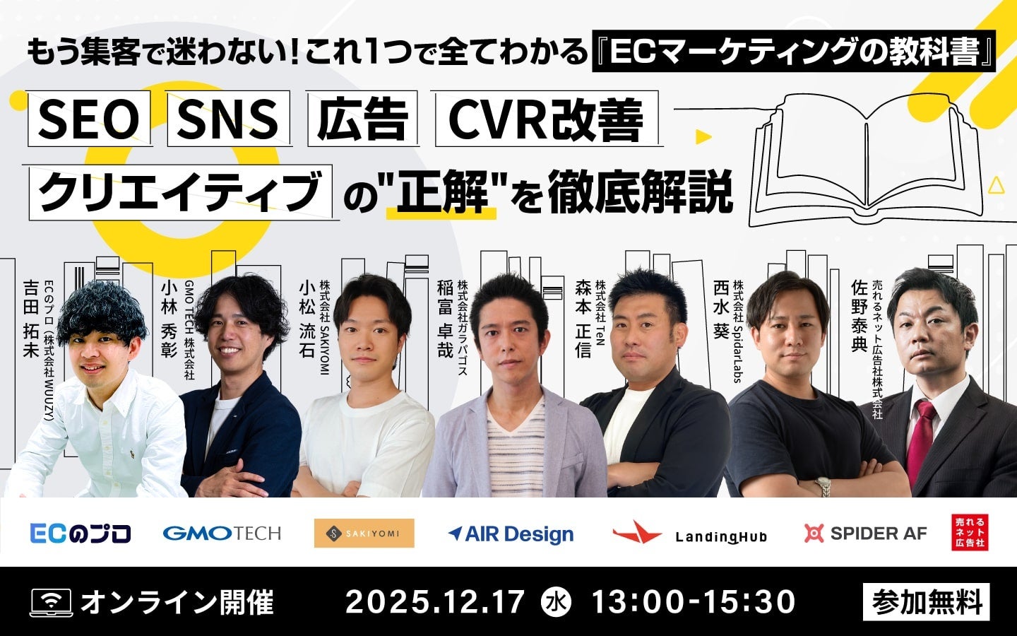 株式会社Spider Labs(本社:東京都港区、代表取締役:大月聡子)は、2025年12月17日(水)に開催されるECマーケティング総合セミナー『もう集客で迷わない!これ1つで全てわかる「ECマーケティングの教科書」〜SEO・SNS・広告・CVR改善・クリエイティブの"正解"を徹底解説〜』に登壇いたします。
