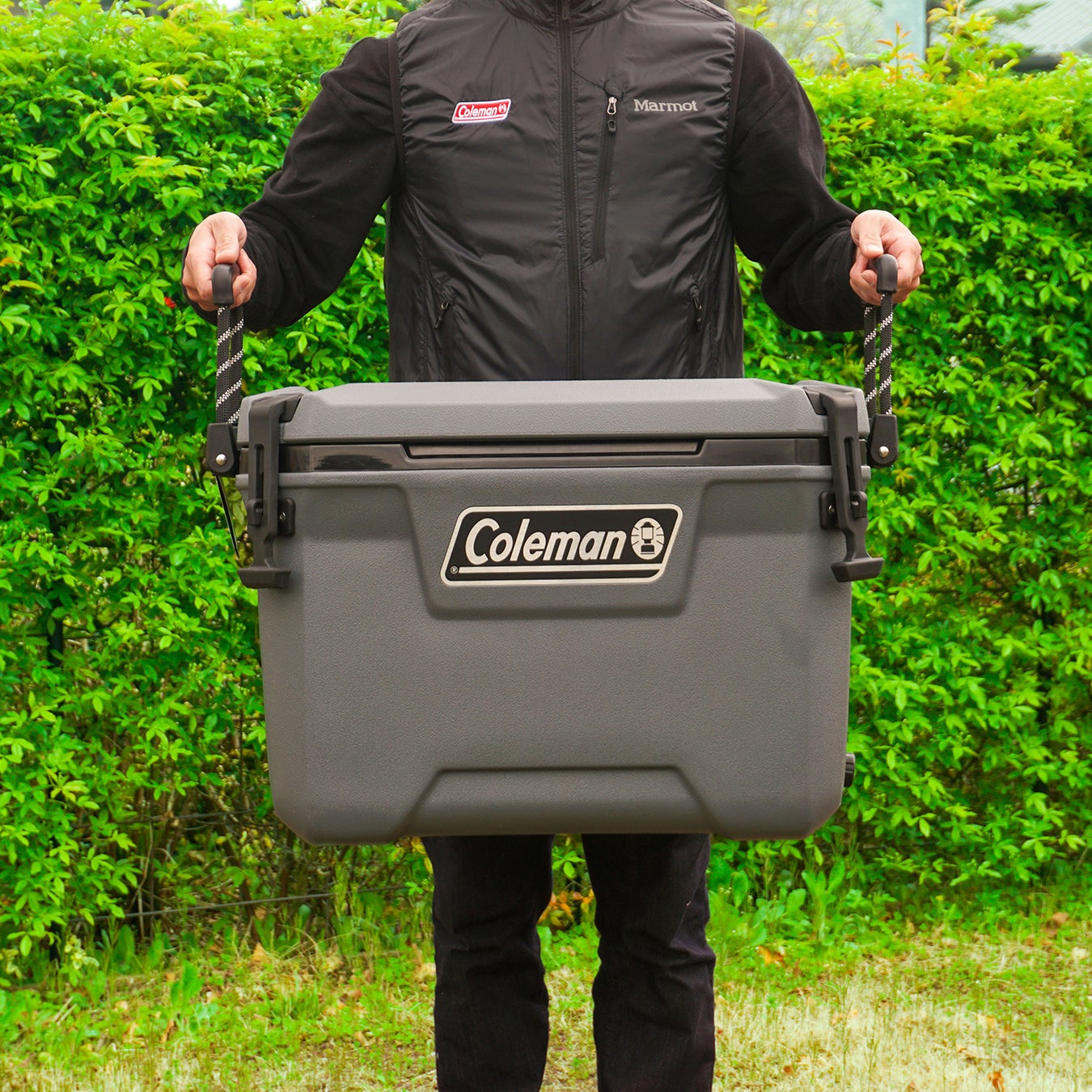 最大4日間の保冷力があり、連休での連泊のキャンプでも安心。2Lのペットボトルを10本入れることができ、4~5人のファミリーキャンプやBBQなどに最適な容量です。両側に握りやすいロープストラップが付いているので、重量がある場合には2人で一緒に持ち運びもしやすいです。