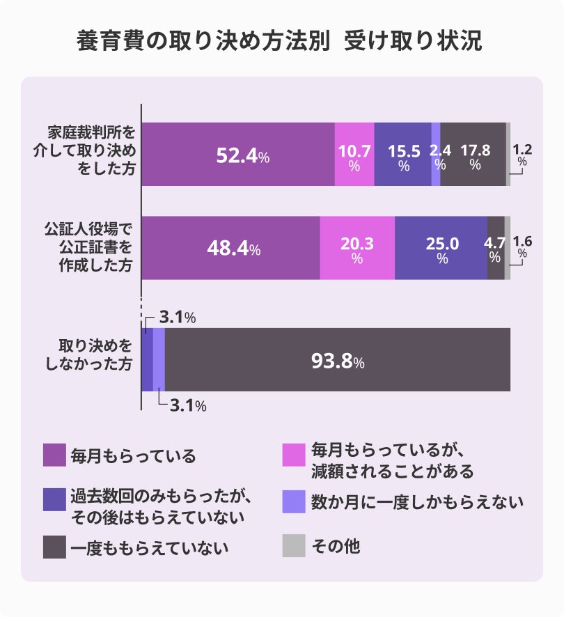 養育費の取り決めをしていても、円満に養育費を受け取れているケースは半数程度