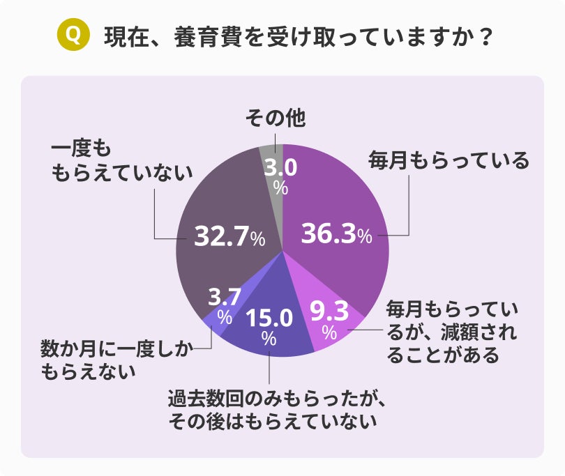 はじめに、離婚の経験があり20歳未満の子どもを持つ女性300人を対象に、「養育を受け取っているか」と質問したところ、36.3%の方が「毎月もらっている」と回答しました。