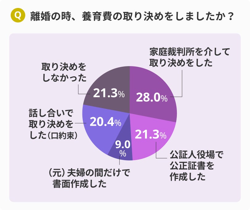 続いて「離婚の時、養育費の取り決めをしましたか?」と質問したところ、「家庭裁判