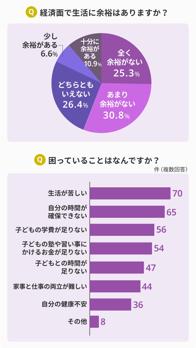 結果として、経済・生活面で困ることがあり、子どもに理想的な教育をしてあげられない状況が発生しているようです。